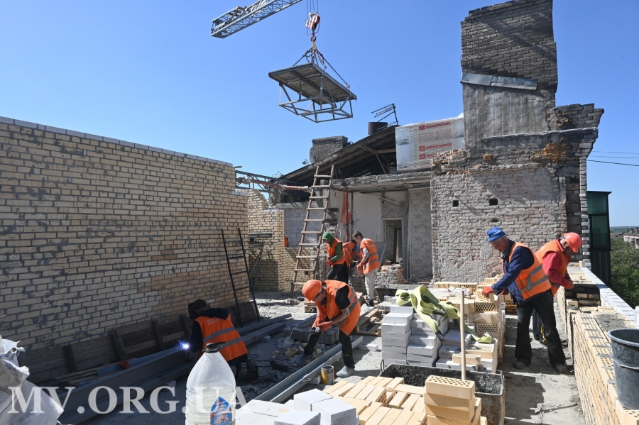 "На об'єкті працює бригада з 40 будівельників. Вони вже облаштували монолітні сходи та площадки, звели цегляну кладку стін, змонтували плити перекриття.
