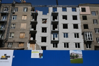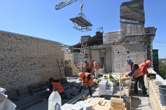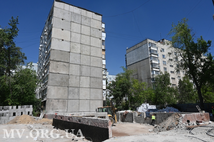Роботи на пошкодженому внаслідок ракетного удару будинку підрядник проводить поетапно. Зараз будівельні та ремонтні роботи проводяться на 1-5 під'їздах, з яких два, нагадаю, - зруйновані. Потім підрядник приступить до відновлювальних робіт у решті під'їздів.