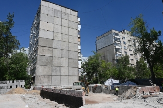 - У будинку на вул. Миру, 14 виконали посилення несучих конструкцій 3,4-го під’їздів. Наразі утеплюємо фасад та влаштовуємо балкони. Влаштовуємо інженерні мережі у квартирах 3,4-го під’їздів.
