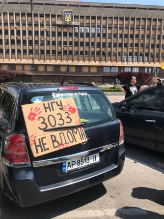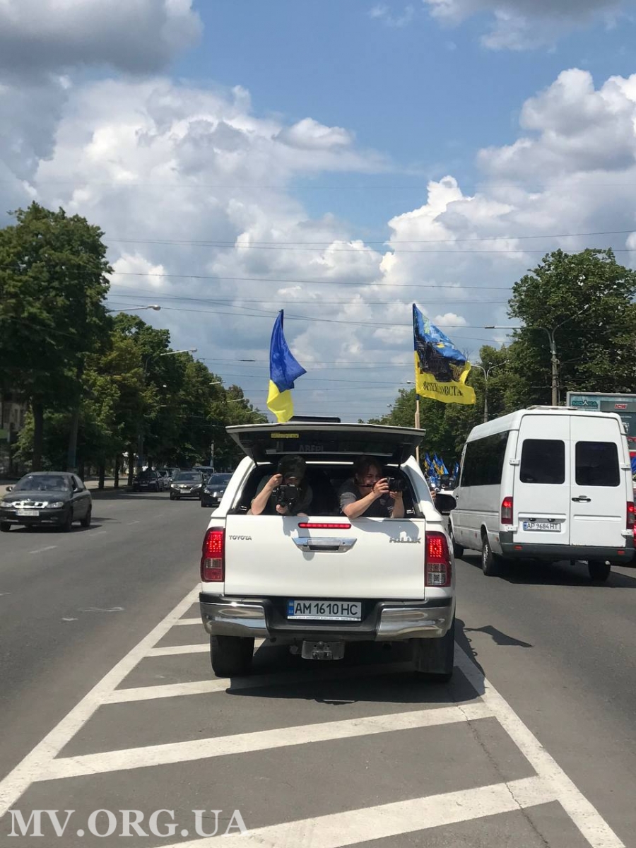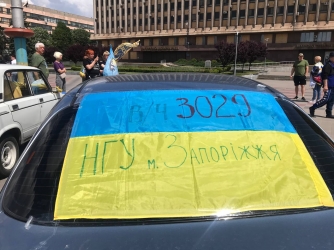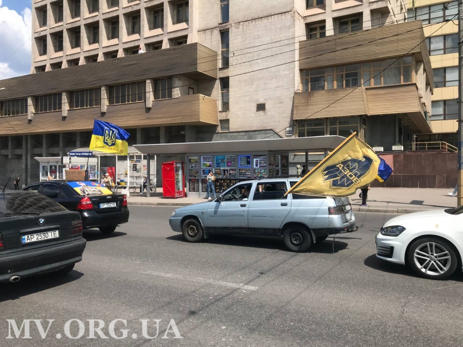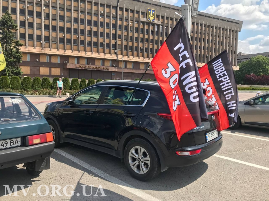 Стартував автопробіг у центрі Запоріжжя - біля адміністративної будівлі обласної влади. Поки учасники автопробігу збиралися, на знак підтримки водії проїжджаючих автомобілів натискали на класони.