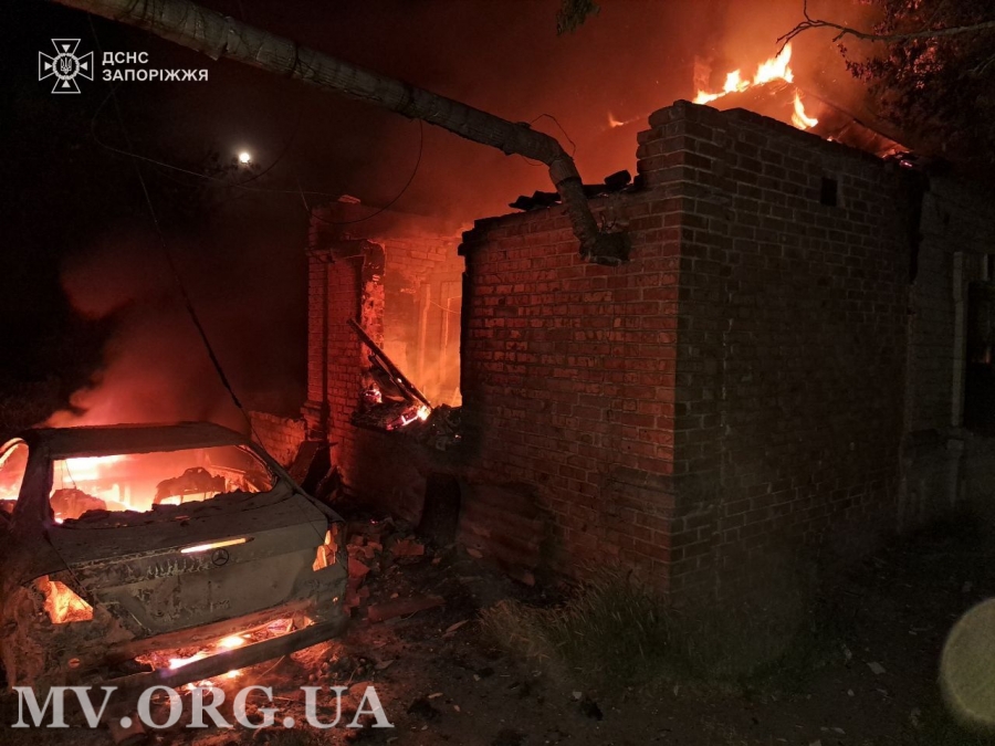 У Запорізькій області через обстріли спалахнув будинок та автомобіль