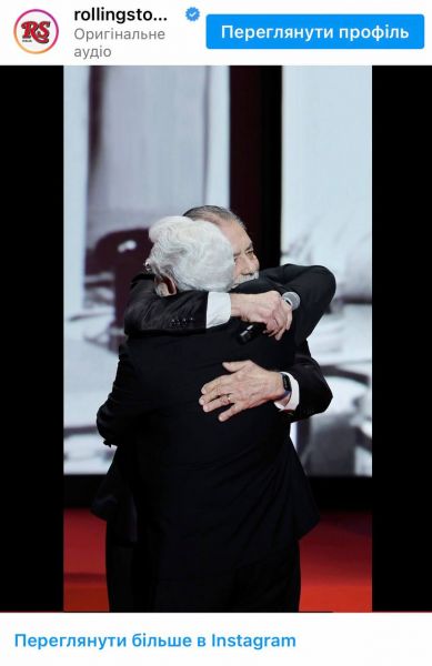 С микрофоном в руке - еще одна легенда мирового кинематографа, Фрэнсис Форд Коппола, снявший, в частности, фильм "Однажды в Америке".