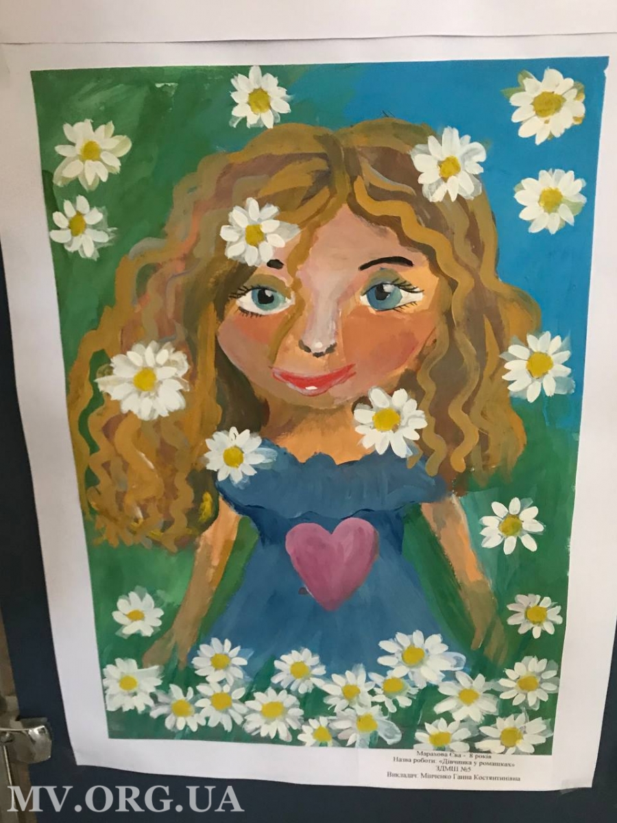 - Нам підказали, що доньку треба віддати вчитися малюванню, - розповіла Альона Миколаївна. - Попросила директора музичної школи №5, щоб її взяли на художнє відділення. Я присутня на кожному уроці, займаємося у викладача Ганни Костянтинівни Мінченко. Ця виставка для Валерії — перша.