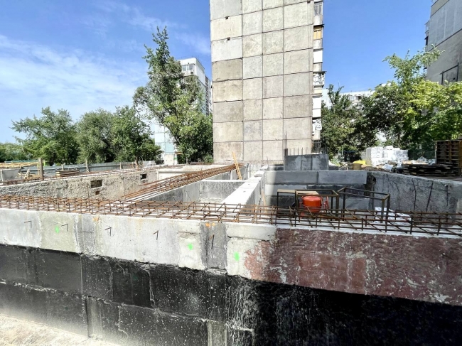 На вул. Запорізька, 2а, влаштували стіни і перегородоки техпідпілля та їх гідроізоляцію. Утеплюють фасад 2-го під’їзду, виконують армування та влаштування опалубки в межах техпідпілля та монолітного поясу.