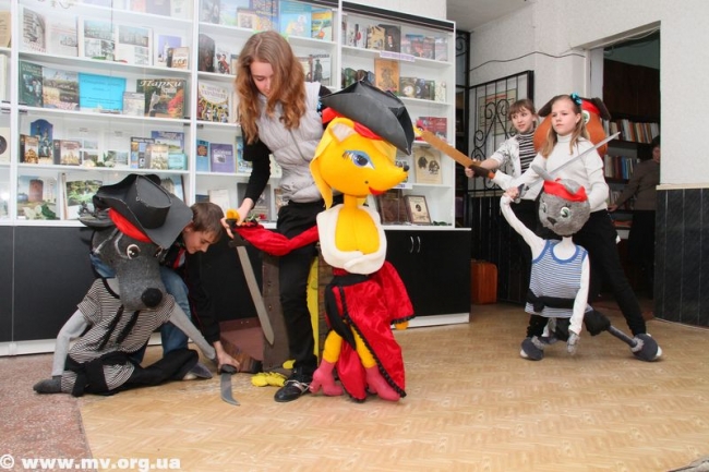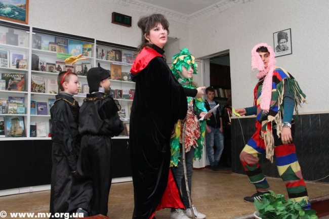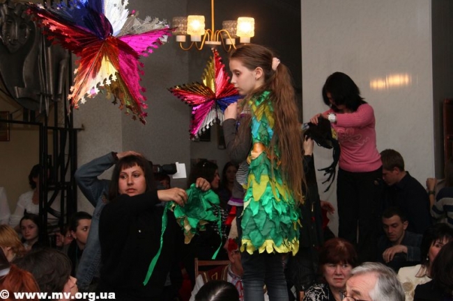 Далее гости мероприятия посмотрели сценку в исполнении артистов народного театра кукол "Алые паруса", танцевальные композиции, которые исполнили студенты Мелитопольского училища культуры и ДК железнодорожников. Чертик (Юлия Гончарова) провела среди зрителей конкурс по созданию сказочного героя - Лешего, Бабы Яги, Лесовичка.