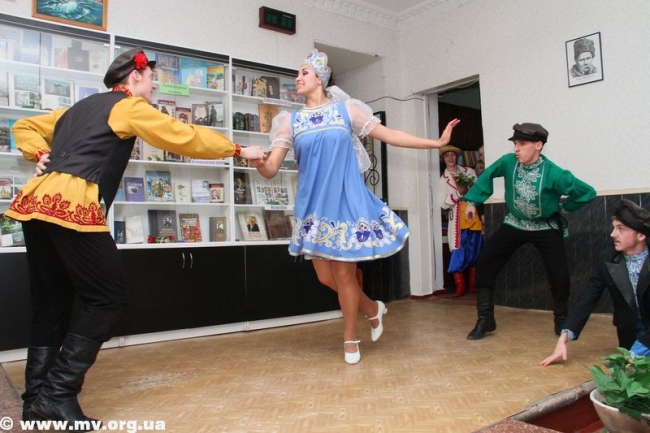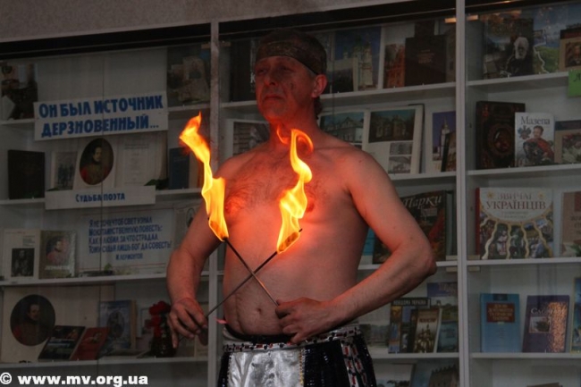 Поразили гостей артисты народного цирка "Пламя молодости" и особенно Факир (Александр Крыжановский), которого ни огонь не брал, ни ножи не резали, ни гвозди не кололи. Вокальный коллектив "Черешни" ДК железнодорожников постарался создать праздничное настроение у гостей. Затем началась интеркультурная страничка в исполнении национально-культурных обществ Мелитополя.