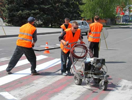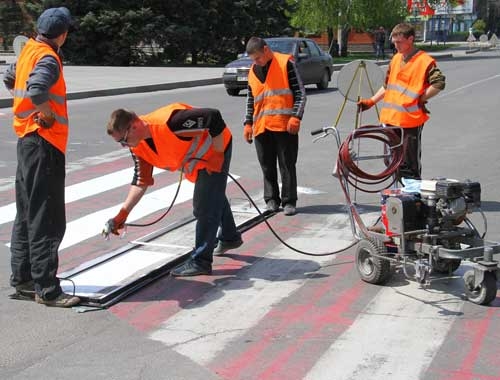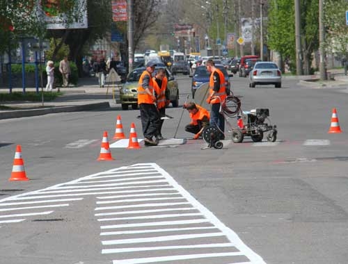 Специалисты мелитопольского ООО «Сельэнергомонтаж» с сегодняшнего дня приступили к нанесению продольной и поперечной дорожной разметки на тех участках улиц, где завершили ремонт асфальтного покрытия бригады асфальтобетонного завода.