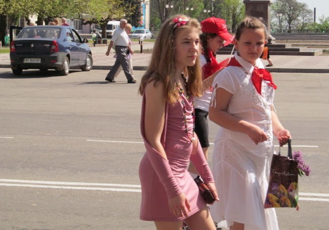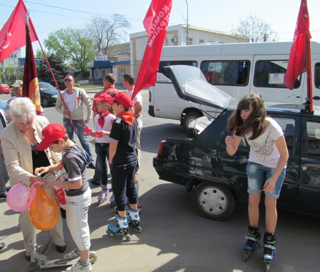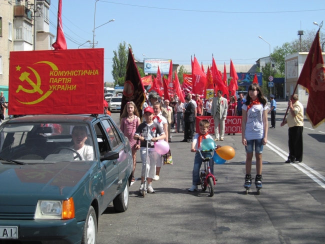 Пройти от улицы Луначарского до Танка на площади Кирова собрались представители КПУ и горожане, поддерживающие их идеи. Возглавляли колонну самые маленькие – дети на роликах (дань времени, браво организаторам!) в красных галстуках. Далее немногочисленные молодые (но были и они) несли транспарант про комсомол. Большинство демонстрантов составляли пенсионеры, что вполне естественно – это их жизнь.