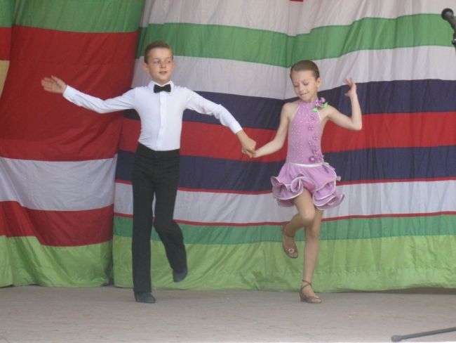 Юные воспитанники ансамбля спортивного бального танца "Радуга" исполнили два танца: "Ча-ча-ча" и "Джайв". Солистка народной акапеллы бандуристов "Джерела" Юлия Чиликинаспела песню "Счасливые часов не наблюдают".