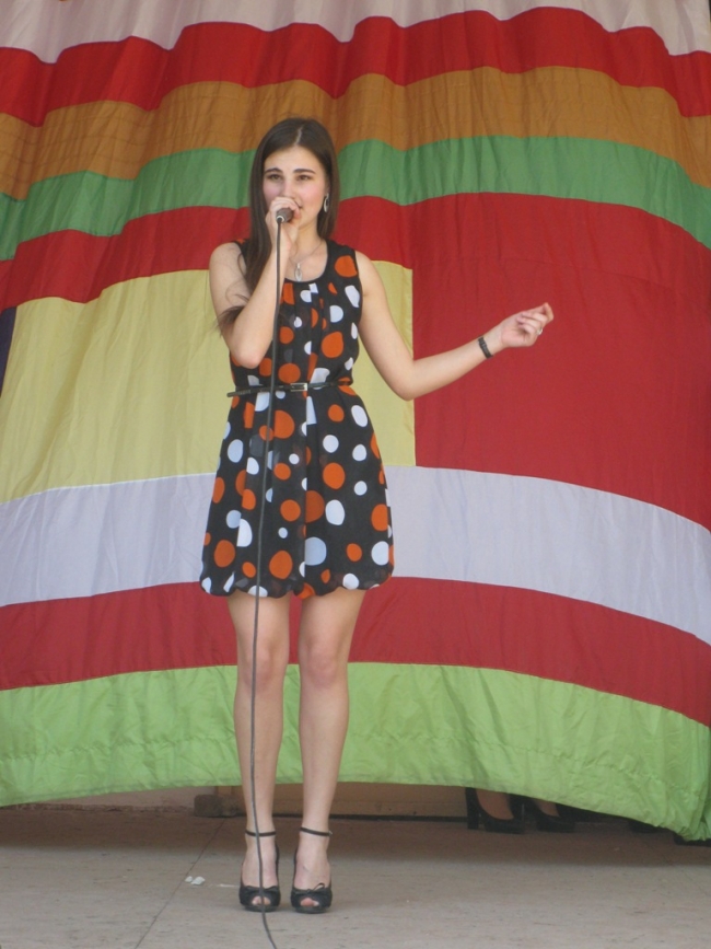 Около полудня близ фонтана на летней эстраде свое мастерство демонстрировали вокалисты, танцоры и участники народного цирка "Пламя молодости". Несмотря на палящее солнце и отсутсвие навесов, зрителей было много и они активно поддерживали выступающих, дарили им свои аплодисменты.