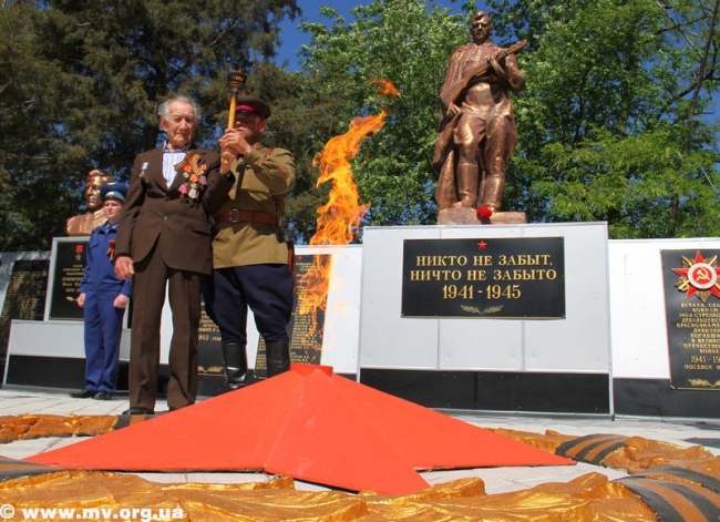 Почетное право зажечь Вечный огонь на Мемориале Славе было предоставлено ветерану Великой Отечественной Войны Петру Васильевичу Шелудяку и руководителю историко-патриотического общества «Противостояние» Евгению Горлачеву.