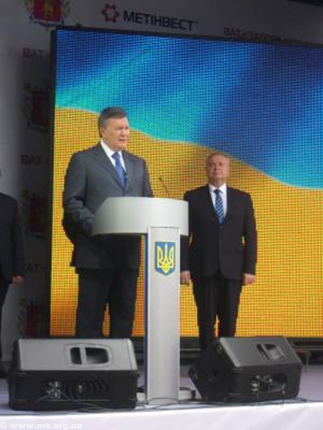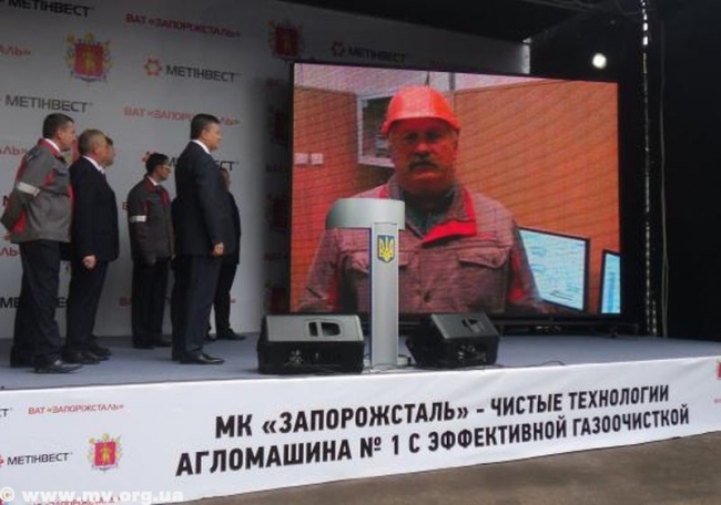 «Я хорошо помню тот день, когда в 2006 году мы с бывшим руководством завода принимали решение об улучшении экологической ситуации. Мы все знаем, что одна из главных проблем – это работа аглофабрик, которые серьезно загрязняют атмосферу. Это боль всех регионов Украины, где имеет место металлургическое производство. Соответственно, решение о модернизации было принято 2006 году, а выполнять запланированные работы мы начали только в 2012 году, когда сменилось руководство промгиганта», - заявил В. Янукович, после чего дал разрешение на запуск нового комплекса оборудования - агломашины № 1, высокотехнологической газоочистки с двумя мощными электрофильтрами, эксгаустерного отделения и компрессорной станции.