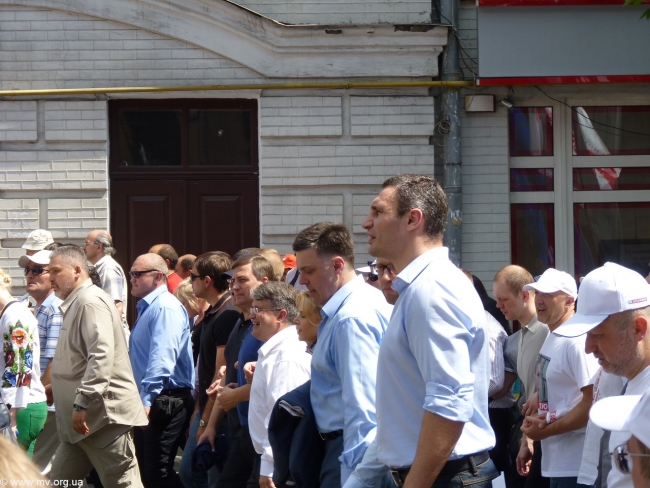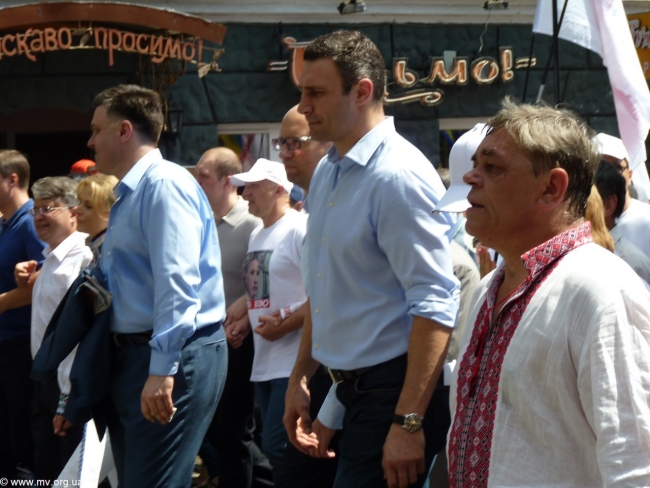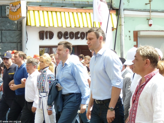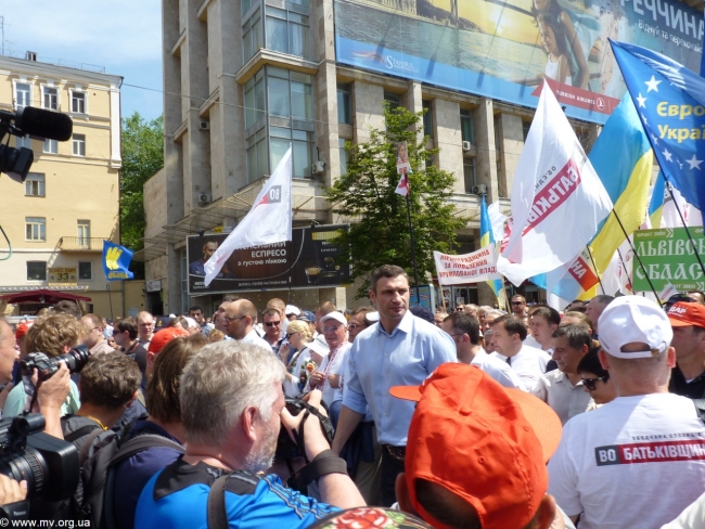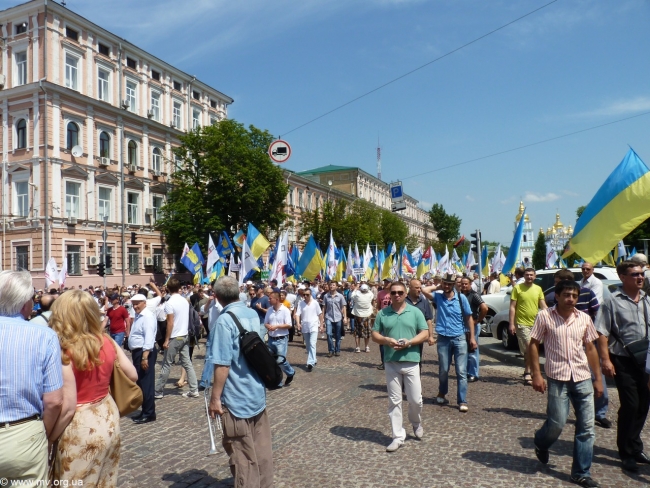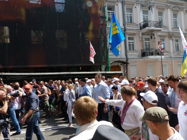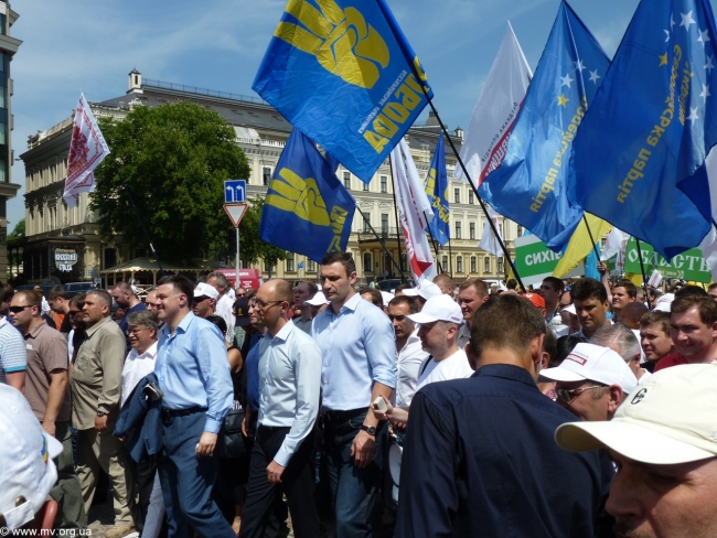 Около 12.00 приверженцы оппозиции направились от Майдана Незалежности к Софиевской площади. Возглавляли колонну Виталий Кличко, Арсений Яценюк и Олег Тягнибок. Появление лидеров оппозиции вызвало фурор. Народ приветствовал их криками поддержки. Корреспонденту «МВ» даже удалось найти участников из Мелитополя от партии "Удар".