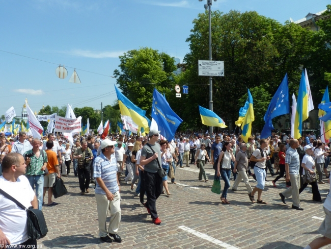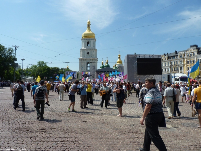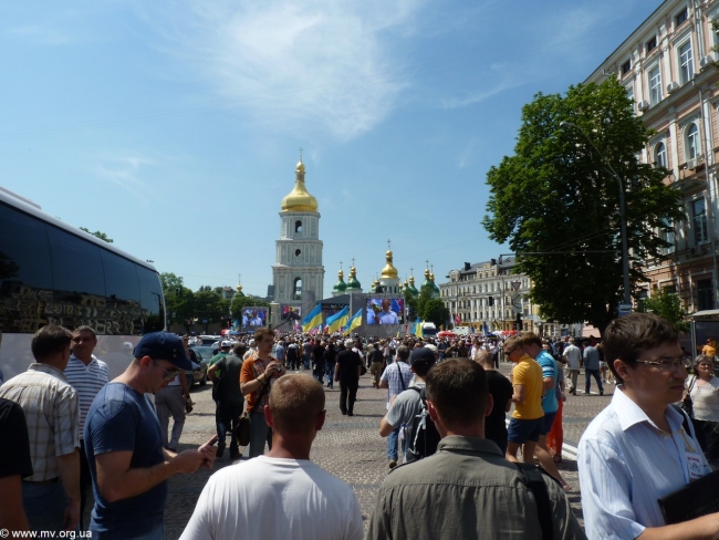 На Софиевской площади демонстрантов ждала сцена, где выступили лидеры оппозиции. Во избежание беспорядков было привлечено множество сотрудников милиции и спецслужб.
