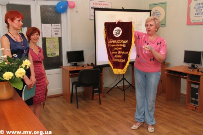 Со словами поздравлений и теплых пожеланий ее коллективу выступили заведующая библиотеки им. М. Горького Светлана Синегина, главный специалист отдела культуры Ольга Егорова, директор ЦБС Любовь Синегина, библиотекарь Лариса Молчаневич и другие. Интересно, что Л. Синегина вспомнила о том, что свой трудовой путь в библиотечной системе она начала в 1971 г. временным работником библиотеки им. Горького, а затем работала здесь в читальном зале. По ее словам, читателей было много, а книг не хватало, но сотрудники строго следовали принципу, чтобы ни один вопрос читателя не остался без ответа. А Л. Молчаневич попала в библиотеку им. Горького маленькой девчонкой с родителями, которые здесь изучали литературу в читальном зале. А спустя годы, она пришла сюда работать заведующей после окончания института. Л. Молчаневич передала коллективу исторические вещи - вымпел 1984 г. о победе в соцсоревновании в честь 200-летия Мелитополя и почетную грамоту 1970 г. за победу коллектива библиотеки в двухлетке культуры на 100-летие Ленина.