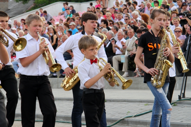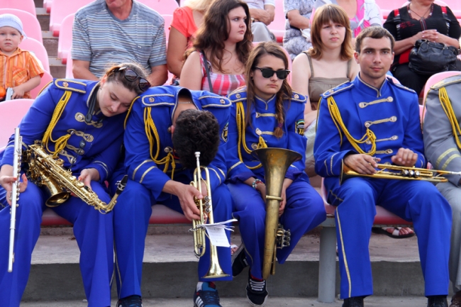 Красочным, грандиозным было открытие фестиваля. В начале ко всем присутствующим обратились со словами приветствий заместитель директора департамента культуры, туризма, национальностей и религий ОГА Наталья Паращук, и.о. городского головы Александр Барыбин, депутат облсовета Геннадий Шанин. Затем каждый оркестр сыграл музыкальное приветствие для многочисленных зрителей, которые заполнили трибуны стадиона. Впечатляющими стали выступления сводных хора творческих вокальных коллективов Мелитополя и оркестров-участников фестиваля. Все встали, когда в исполнении хора и оркестров зазвучал духовный гимн Украины Николая Лысенко «Боже, великий, єдиний». Величественными были «Запорожский марш», мелодия из кинофильма «Завоевание рая», «Гимн Европы» в исполнении сводных хора и оркестров. Танцевальные картинки «нарисовали» для зрителей танцоры ансамбля «Червона калина» МУК (худрук. И балетмейсер Николай Себастиянский).