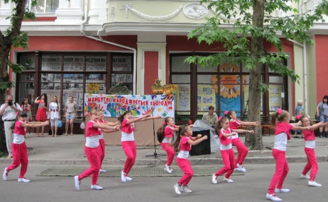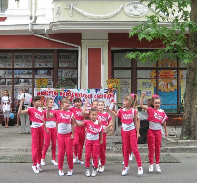 С 10:00 возле краеведческого музея для жителей города начался концерт, подготовленный Дворцом культуры им. Шевченко. Зажигательными танцами порадовали девчонки из образцового ансамбля современного танца «Гилея-Dance» (рук. Наталья Тесля), а воспитанники театра песни «Шоколад» (рук. Наталья Монич) прекрасно исполнили музыкальные композиции.