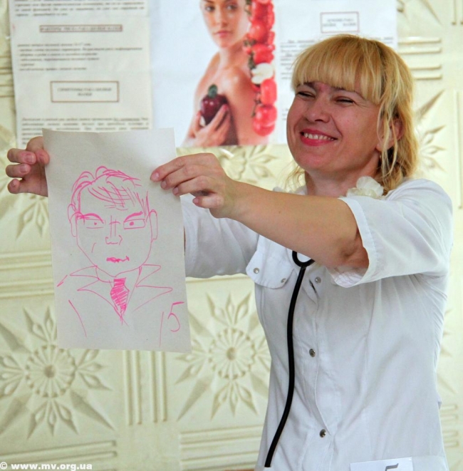 С закрытыми глазами участники по запаху определяли лекарство, надували медицинскую перчатку, создавали чудесные экибаны, в которых нашлось место не только цветам, но и чисто медицинским материалам. Улыбки у всех вызвало художественное мастерство конкурсантов, которые рисовали портрет главного врача поликлиники Ивана Пашко.