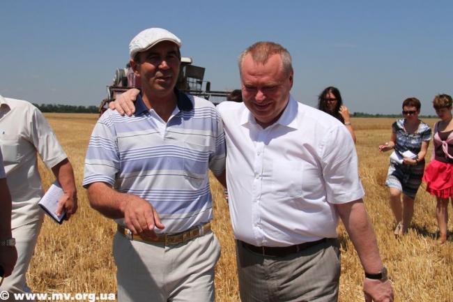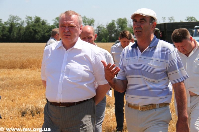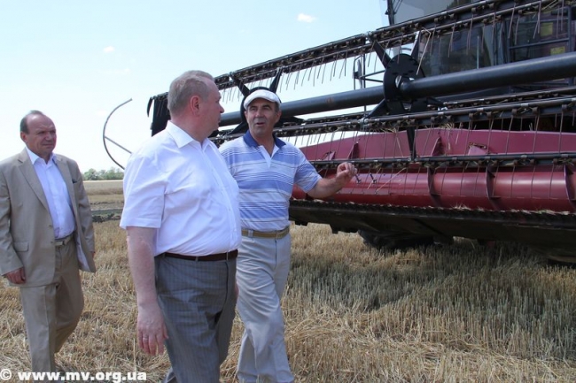 На полях Мелитопольщины А. Пеклушенко общался с руководителями сельхозпредприятий. Директор ООО «Мир» Василий Руденький сообщил, что их агрофирма начала уборку 18 июня и первый обкос показал: в этом году можно надеяться на урожай 30 центнеров с гектара.
