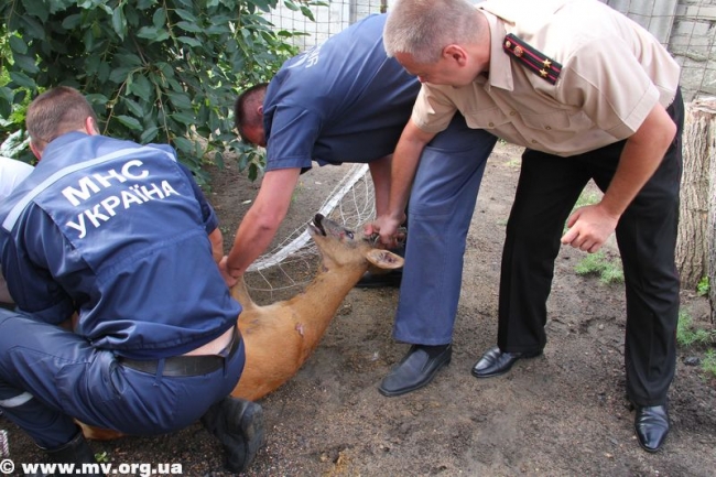 3 июля сотрудники горрайонного управления ГСЧС и Мелитопольского лесхоза занимались непривычным для себя делом – пытались поймать испуганную косулю. Животное ночью забежало на территорию канализационной насосной станции КП «Водоканал» и не могло найти путь на свободу.