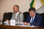 Сегодняшняя 41-я сессия Мелитопольского городского совета началась с семиминутным опозданием - необходимый минимум депутатов (31 чел.) к 10.00 не собрался. Вел сессию секретарь горсовета Андрей Чаппа. На заседании присутствовали замглавы Запорожского облсовета Николай Ярмощук, депутаты облсовета Геннадий Шанин, Владимир Кюрчев и Валерий Коваленко.
