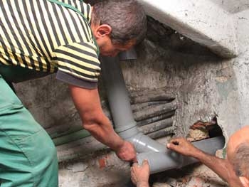 Служившая три десятка лет чугунная труба ливнестока в прошлом сезоне дала течь в нескольких местах. Поэтому было принято решение ее заменить на пластик - 23 м от подвала до пятого этажа. Новые трубы должны прослужить минимум полвека. Чтобы ливневки не забивались, на кровлях установлены грязеуловители. Их осмотр должен вестись еженедельно.