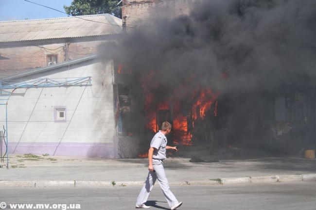 Мелитополь. Сгорел магазин обоев напротив райотдела милиции