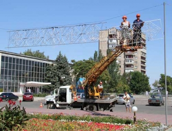 Светодиодную гирлянду, выполненную в стиле традиционных украинских вышиванок, смонтировали вчера на пл. Победы специалисты КП "Горсвет". Красно-бело-синий орнамент длиной 12 м и высотой 1,2 м украсил собой сквер в нижней части площади, сообщил директор предприятия Валентин Зверев. Изготовили его на фирме "Люмьер" (г. Ильичевск), откуда "родом" и 13 светодиодных растяжек, закрепленных над дорогами в различных районах города в 2012-13 гг. Бюджетных средств на покупку не тратили.