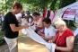 Первые стежки на домотканой ткани положили вышивальщицы общества декоративно-прикладного искусства "Надежда", а после каждый желающий мог приложить свою руку к оберегу.