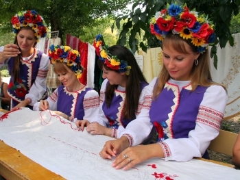 23 августа, в День государственного флага Украины, мелитопольские мастерицы начали вышивать шестиметровый рушника "Єднання поколінь", который в будущем станет оберегом города.