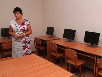 В. Бузынник показала класс, в котором "поселили" новые компьютеры. Фото Сергея КРЫЛОВА.