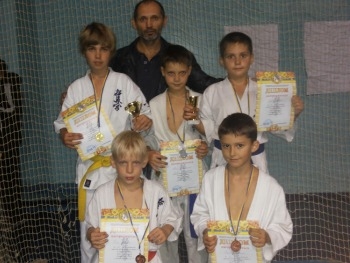 Золото завоевали Вадим Рябов и Никита Ольховский, серебро в активе Дмитрия Попова, а обладателями бронзовых наград стали Артем Огий и Даниил Сизов. Кроме чемпионов В. Рябова и Н. Ольховского, тренеры Алексей Школяренко и Е. Виниченко, отмечают успешное выступление начинающего спортсмена Д. Сизова. На пути к своей медали Даня, выступая с белым поясом, несмотря на использование соперниками запрещенной техники, сумел одержать победы над каратистами, имеющими более высокую квалификацию, чем он.