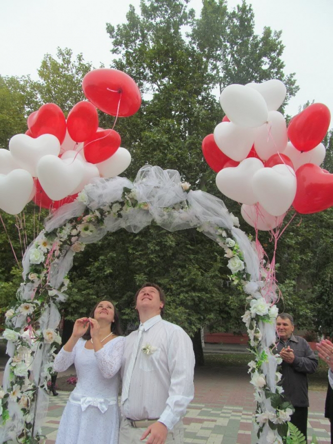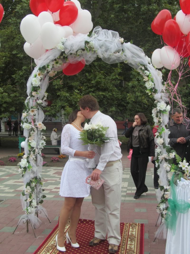 В подарок пары получали памятные открытки, магниты с изображением Мелитополя и возможность отпустить в небо воздушный шарик форме сердца. По словам режиссера театрализованных мероприятий и праздников ДК Шевченко Анастасии Гарбар, желающих нашлось много. Среди них молодожены Надежда и Сергей Бурдюковы. 28 сентября после 4-летних отношений пара скрепила союз в ЗАГСЕ и очень обрадовалась сюрпризу в виде арки.