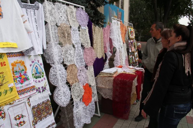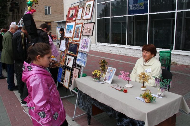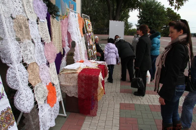 В это же время возле ДК Шевченко продолжали создавать оберег города мелитопольские мастерицы вышивки под руководством заслуженного мастера народного творчества Украины Надежды Денисюк. Напомним, что рушник «Єднання поколінь» родился 24 августа, в День независимости. Первые стежки смогли сделать все желающие. Работа продолжается и сейчас, ведь размер полотна немаленький – 45 см на 6 м. 28 сентября внести свой вклад в его создание могли все желающие.