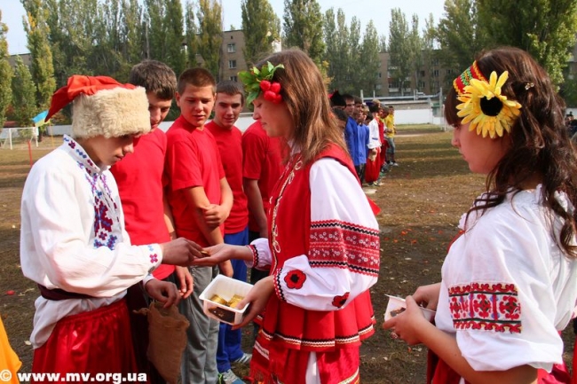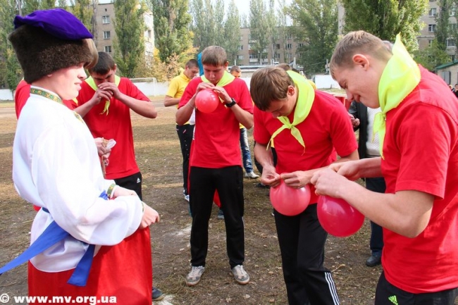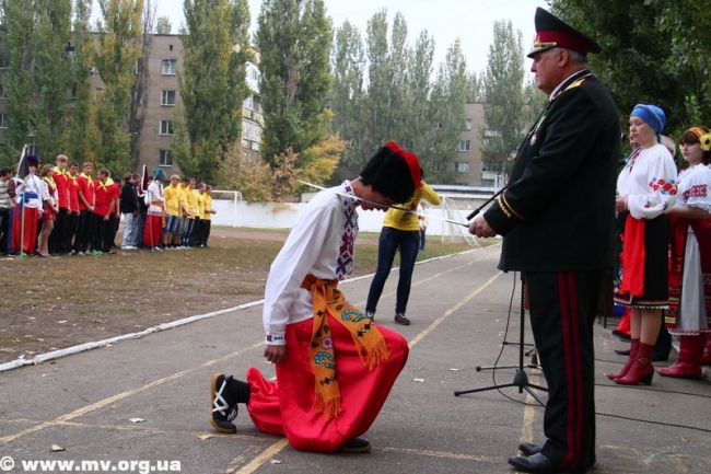 По доброй традиции, пока «берегини» каждого «куреня» варили кулеш на костре, атаманы дали клятвы на верность Украине, а после все дружно студенты центра устроили казацкие забавы.