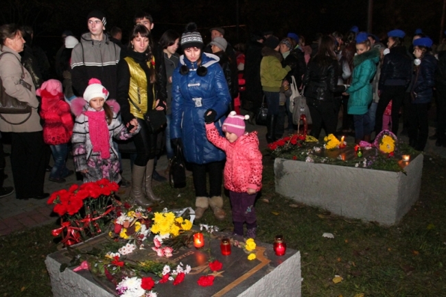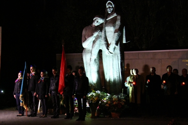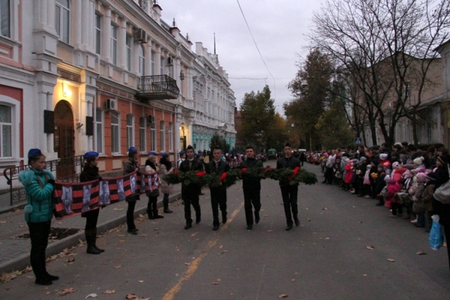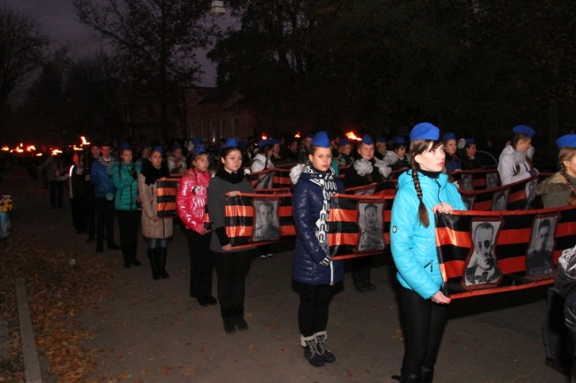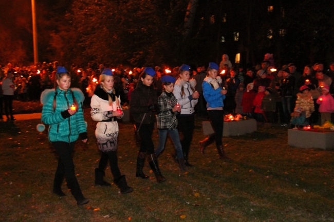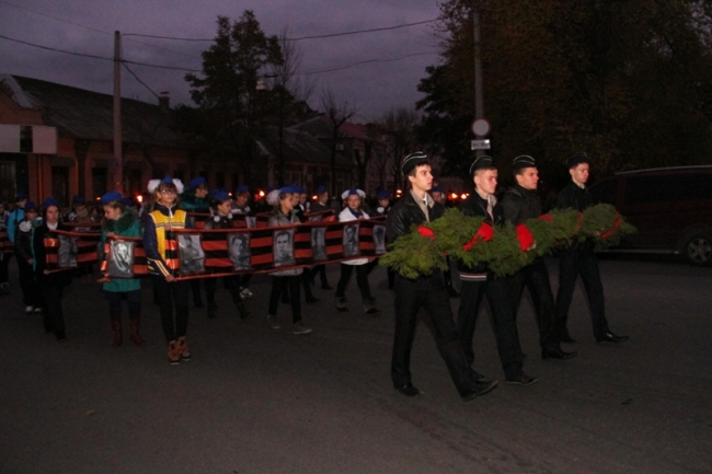 В колонне с зажженными свечами и факелами шли кружковцы Дворца от самых маленьких воспитанников студии "Родничок" 3-4-х лет, до выпускников. Вместе с ними от Дворца творчества на ул. К. Маркса до Братского кладбища прошли их педагоги и родители, к которым по маршруту следования присоединялись неравнодушные мелитопольцы, захотевшие стать участниками памятного мероприятия.