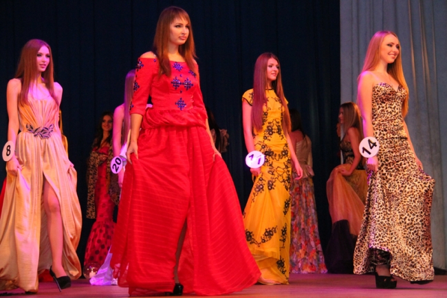Двадцать очаровательных претенденток от 16 до 23 лет собрались на одной сцене. Девушки продемонстрировали три выхода: в классическом маленьком красном платье, в купальниках с леопардовым принтом и вечерних нарядах. Каждая конкурсантка подготовила и видеовизитку, в которой рассказала о себе, своем хобби, девизе по жизни и ближайших планах. Выходы девушек чередовались с яркими танцевальными и вокальными номерами, показами коллекций от звездных гостей. Некоторые наряды были супераванградными: материалом для них служили бумага и пластиковые тарелки. Атмосфера в зале была очень теплой, особенно аплодировали (и комментировали, чего скрывать) представители сильной половины человечества.