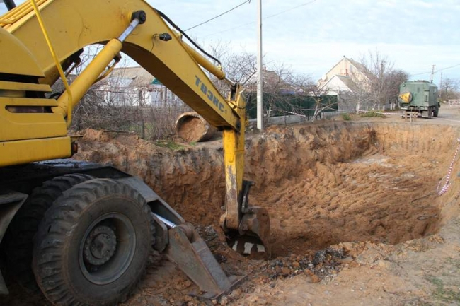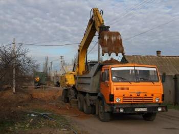 На фото: Пока экскаватор роет котлован, в котором будут прокладывать гофротрубу диаметром 400 мм
