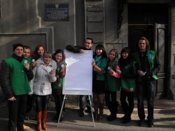 Волонтеры института провели акцию «Скажи доброе слово прохожему», а заодно и предложили горожанам отразить на ватмане свое мнение о Мелитополе и написать пожелания горожанам.