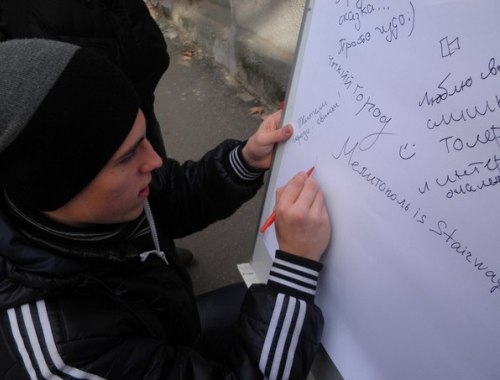 В итоге на импровизированных «стенах правды» появились доброжелательные надписи, сродни «четкий город» и «просто чудо», а также откровенные о наболевшем «Жители города- свиньи!». Но даже такие заявления прохожих не испортили настроения волонтерам. Всем участникам акции студенты вручали «улыбающиеся ладошки» и приветливо улыбались, отчего зимний день становился капельку теплее.