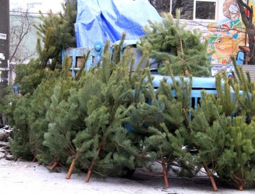Стоимость их от 80 грн. и выше. Не очень высокое, но зеленое и пушистое дерево можно купить за 130 грн. Привезли черниговские елки ребята из Мелитополя.