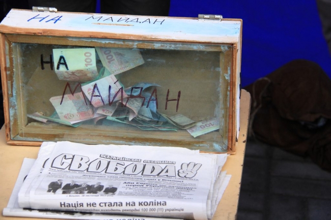 В палатке Всеукраинского объединения «Свобода» активисты собирали деньги на киевский Евромайдан, а в палатке Народного руха Украины – подписи горожан за отставку правительства и подписание Соглашения об ассоциации с Евросоюзом.