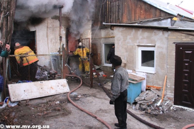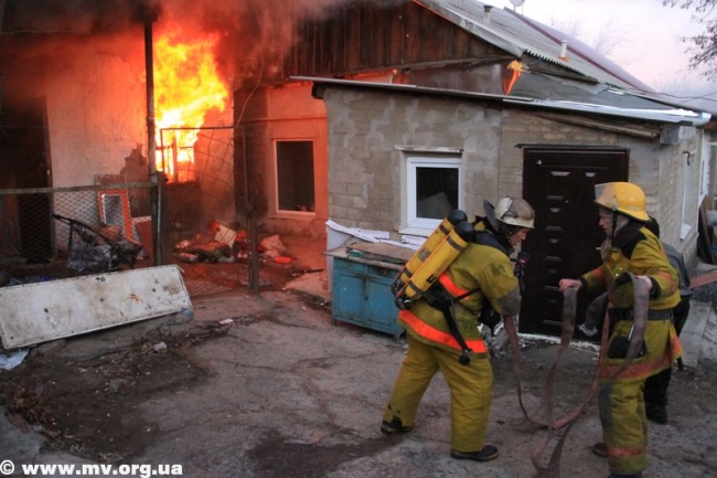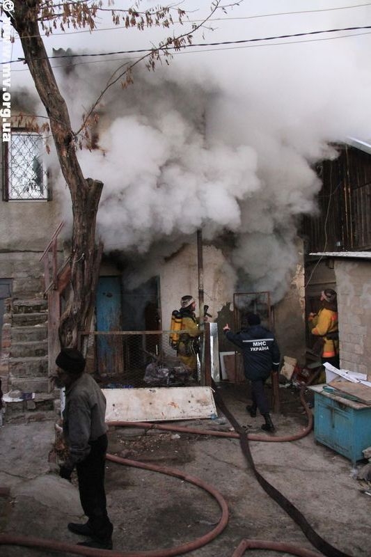 Два спецавтомобиля Мелитопольского горрайонного управления ГСЧС потребовались для тушения пожара на ул. К. Маркса. Примерно в 15.40 во дворах прямо напротив здания горисполкома загорелся дом.