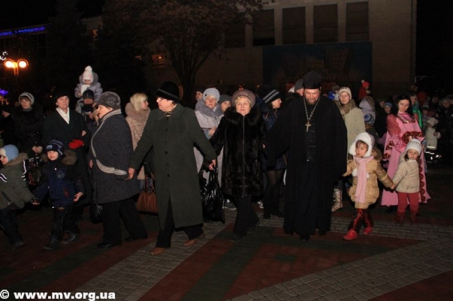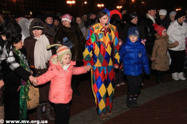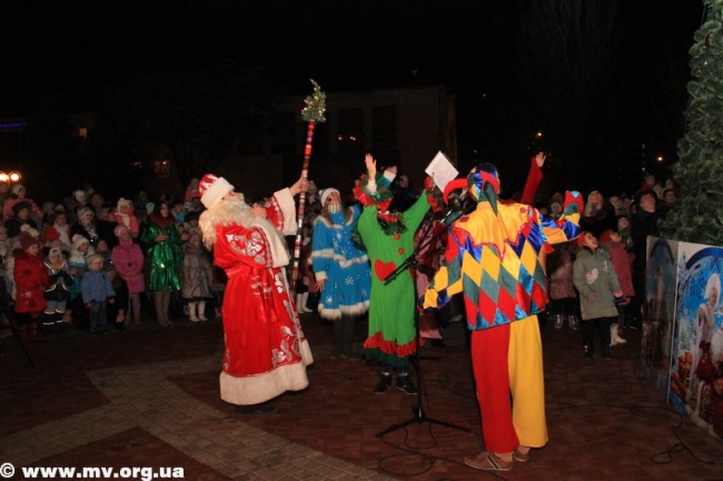 Праздник подготовили сотрудники ДК им. Т. Шевченко, студенты-практиканты Мелитопольского училища культуры, артисты театра песни "Шоколад" ДК им. Т. Шевченко. Возле елки водили веселые хороводы, пели песни и отгадывали загадки. Правда, веселью попытался помешать Царь со своей дочерью Царевной Несмеяной, но, увидев, как радуются дети, какая замечательная, праздничная атмосфера на празднике, Царь не стал звать свою стражу, чтобы разогнать толпу, а Несмеяна заулыбалась.