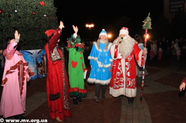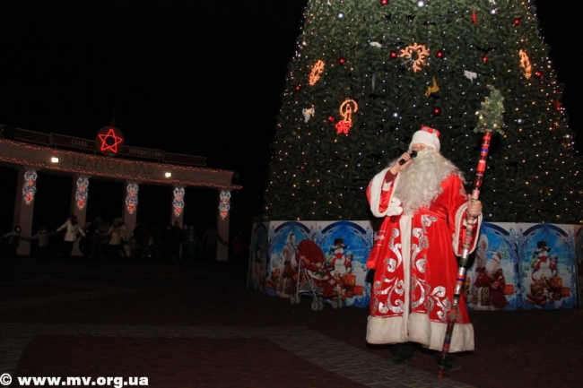 Праздник продолжался, а елка все еще не зажглась разноцветными огнями. На помощь пришел главный Дед Мороз Мелитополя, который предложил сказать всем волшебные слова: "Елка, гори!". Но елка все не загоралась. Как предположил Дед Мороз, дело в том, что волшебные слова кричали только дети, а их родители, бабушки и дедушки молчали. Когда к детскому многоголосью подключились и голоса взрослых, елка вспыхнула яркими огоньками. Праздник продолжился.