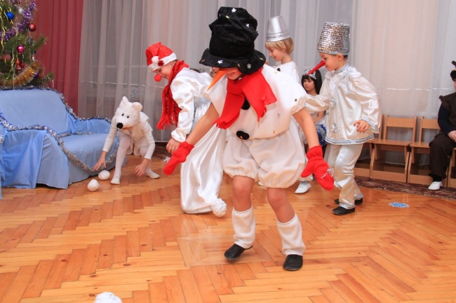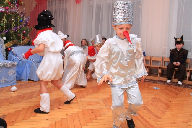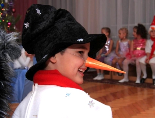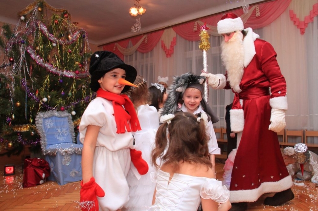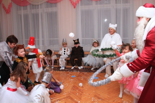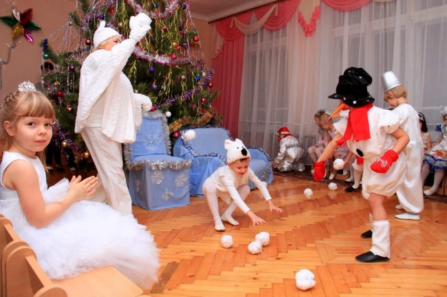 Ну какой Новый год без Деда мороза? Им стал один из родителей, не только сыгравший роль любимого всей ребятней дедушки перед группой своего сына, но и подаривший сказку другим группам. Ребятня читала Морозу стихи, водила хороводы у нарядной елочки, участвовала в конкурсы и «снежки», пела и танцевала. А когда с потолка посыпался пенопластовый снег, вопреки программе, решили его собрать и посыпать елку. Заснеженной он, конечно, не стала, но смеха было море!