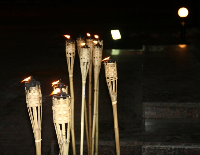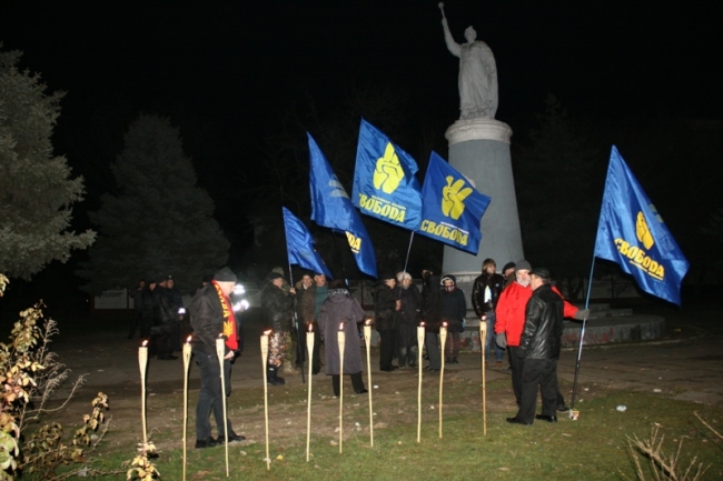 Поскольку ни мемориальных досок, ни памятников С. Бендере в нашем городе нет, активисты прошествовали до памятника Т.Шевченко с партийными флагами и зажженными факелами в сопровождении правоохранителей.