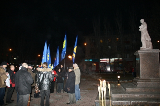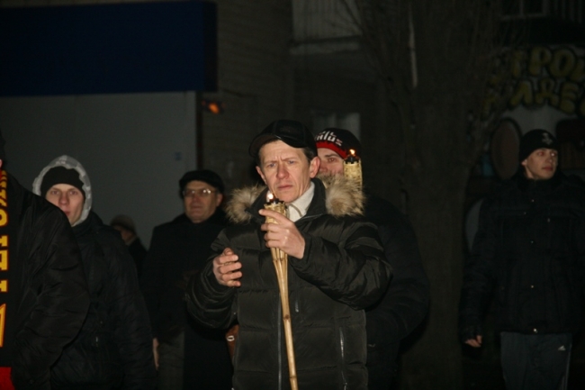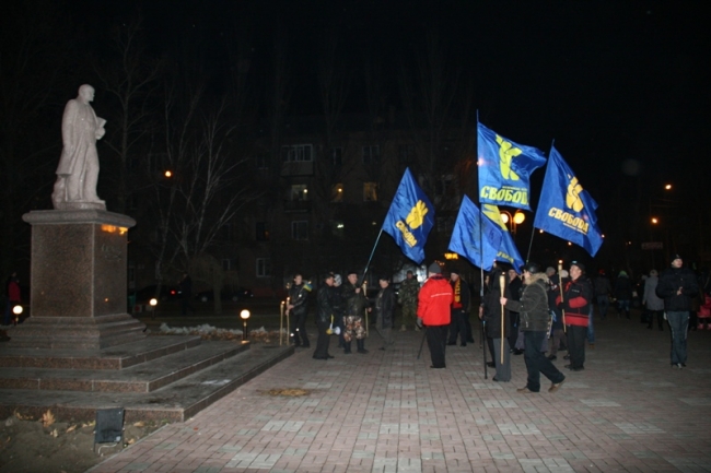 1 января мелитопольская организация ВО «Свобода» провела факельное шествие в честь 105-летия со дня рождения идеолога украинского национализма.