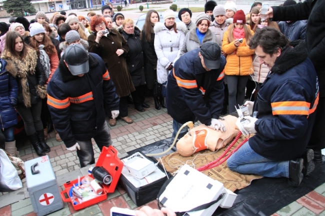 Зрителями стали врачи-анестезиологи, реаниматологи и медсестры. Организовала мероприятие ассоциация анестезиологов Запорожской области.