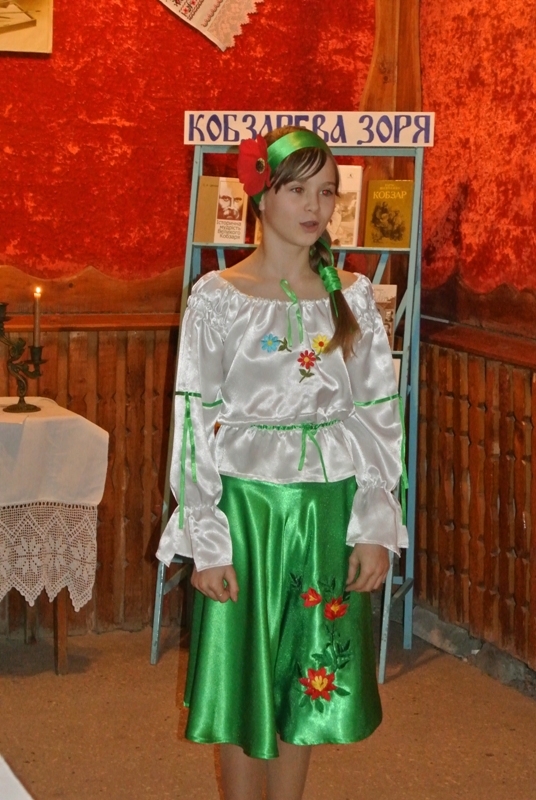 Постоянные ведущие - библиотекари А. Подзолкова и Г. Дячек рассказали о биографии и творческом пути Тараса Шевченко. Произведения поэта озвучили участники театрального коллектива «Чародеи» детской музыкальной школы - Евгения Доброжанова и Анастасия Белик. Библиотекарь Юлия Дедушева и ее сын Василий подготовили театральную постановку, а трио трио «Вербена» - современную обработку песни «Звезда моя вечерняя».